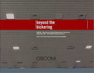 From this grew OSCOM, an international non-profit for open source content management. The basic idea is to foster communications and community amongst the creators of these open source projects. A very successful conference was held in Zurich earlier this year. Another is slated for Berkeley in September.