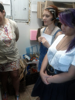 note the cyborg recording device on the red-haired lady. i have never seen these before. fascinating. welcome to the present where you are always on air. (just look for the red dot…)